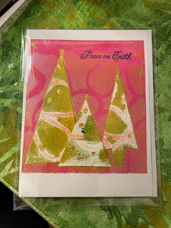 I created these lovelies with oodles of upcycled treasures that I have been saving all year! I have used my favorite yummy papers, such as, hand painted, stamped, stenciled, mono printed, exotic and found papers. These twinkly layered bits and pieces combine to find new life as this year's Christmas cards. I love upcycling these little scraps of love. Here's a smattering of what they look like and no two are exactly alike.